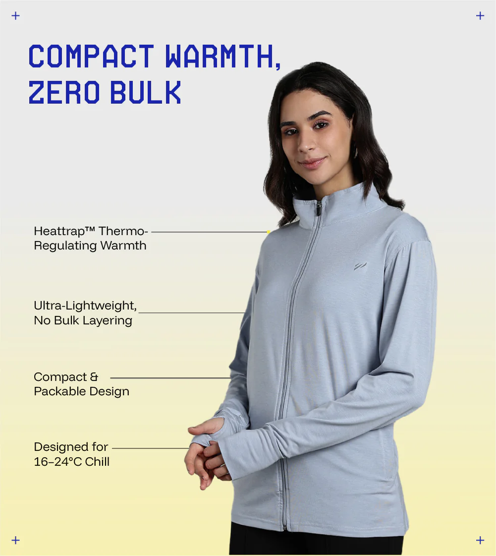 Say goodbye to shivering in over-cooled offices, long flights, or AC-heavy workspaces. The Bluetyga Anti-AC Thermal Jacket with Heattrap™ Technology regulates warmth smartly—keeping you cozy in the chill yet never overheated. Engineered from a premium Modal-Acrylic-Spandex blend, it is ultra-soft, sweat-wicking, wrinkle-free, and baggable for travel. Built for 16–24°C indoor chill zones, it’s the perfect solution for comfort, portability, and modern work-life versatility.